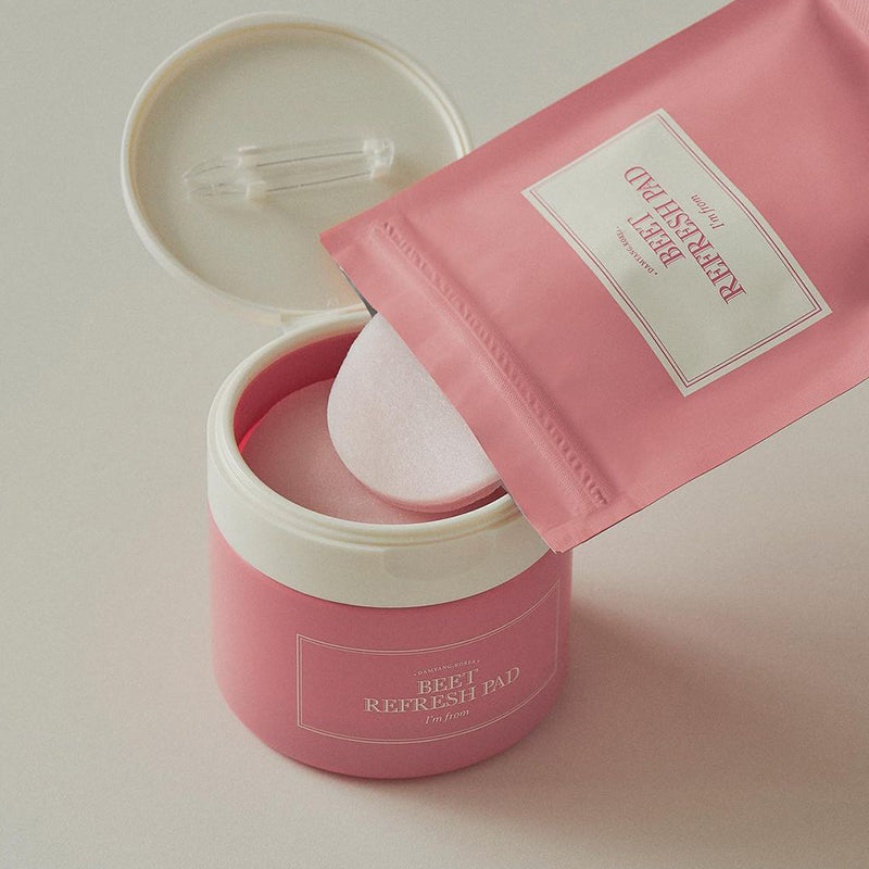 De I'm From Beet Refresh Pad brengt een uitbarsting van revitalisatie en hydratatie met zijn in essentie gedrenkte toner pads, met 20% rode biet extract. Deze krachtige formule boordevol anthocyanine pakt niet alleen dofheid aan, maar maakt ook de ruwe huidtextuur gladder. Het is een huidvriendelijke oplossing voor alle huidtypes, dankzij het bètacaroteen in rodebietextract, dat een kalmerend effect heeft en zelfs wonderen doet voor de geïrriteerde huid.