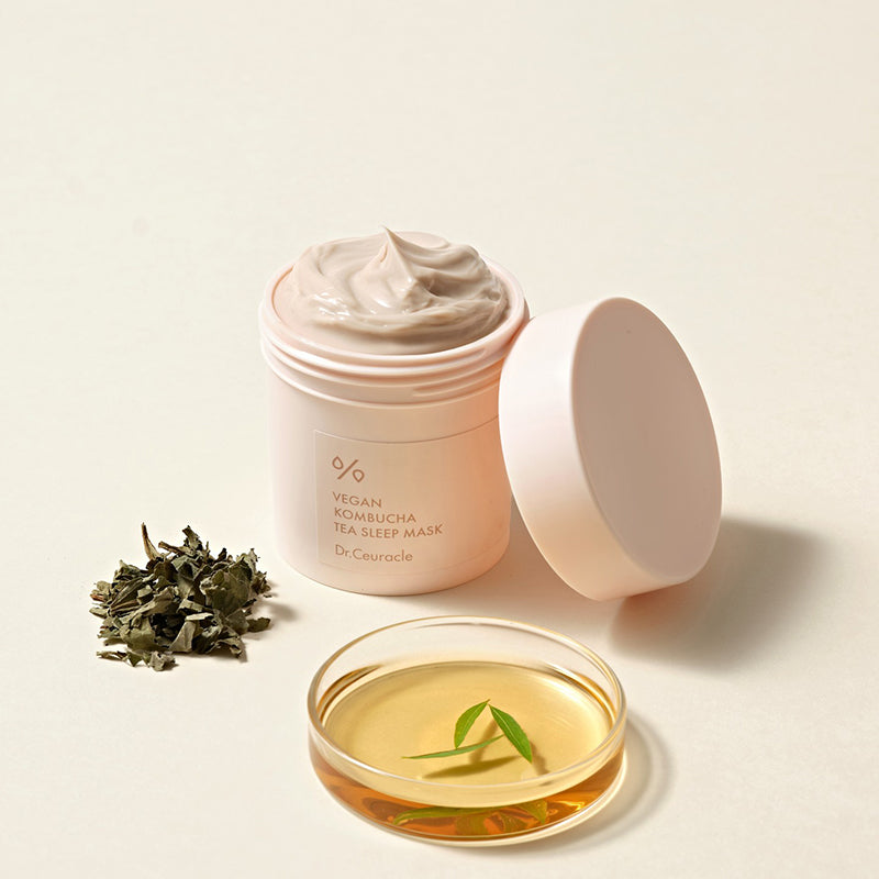 Wake up to a refreshed, glowing complexion with the Dr.Ceuracle Vegan Kombucha Tea Sleep Mask, a rich overnight treatment that deeply nourishes and revitalizes your skin while you sleep. Formulated with the signature Fermented Tea Complex—featuring kombucha, green tea, and probiotics—this creamy mask helps detoxify and balance the skin for a healthier, more radiant look.